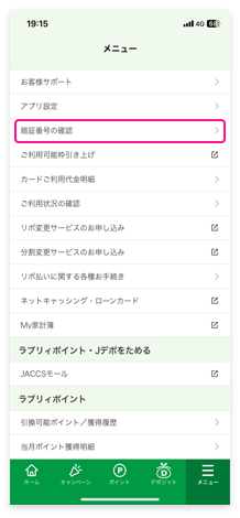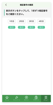 1.メニュー画面「暗証番号の確認」をタップしてください。