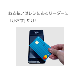 レジにあるリーダーにサッとかざすだけ。サインレスでお支払いが完了するので、スマートにご利用いただけます。