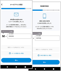 携帯番号・メールアドレスを登録し、本人確認を行ないます。