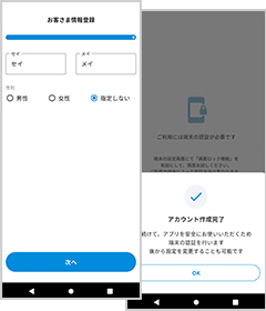お客様の氏名などの情報を登録し、続けて端末の認証を行ないます。