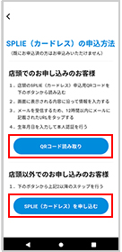 店頭以外でお申し込みする場合は、「SPLIE(カードレス)を申し込む」を選択してください。
